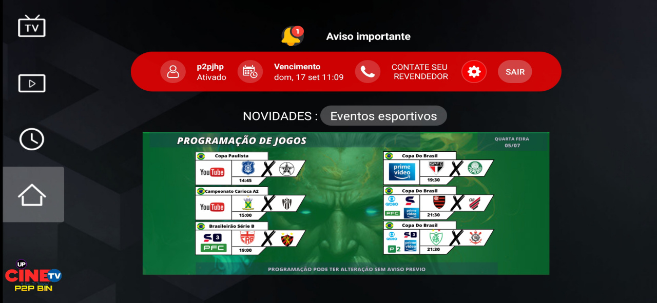 Em DNS URL colocar o nosso DNS: http://cdn.upcinetv.com